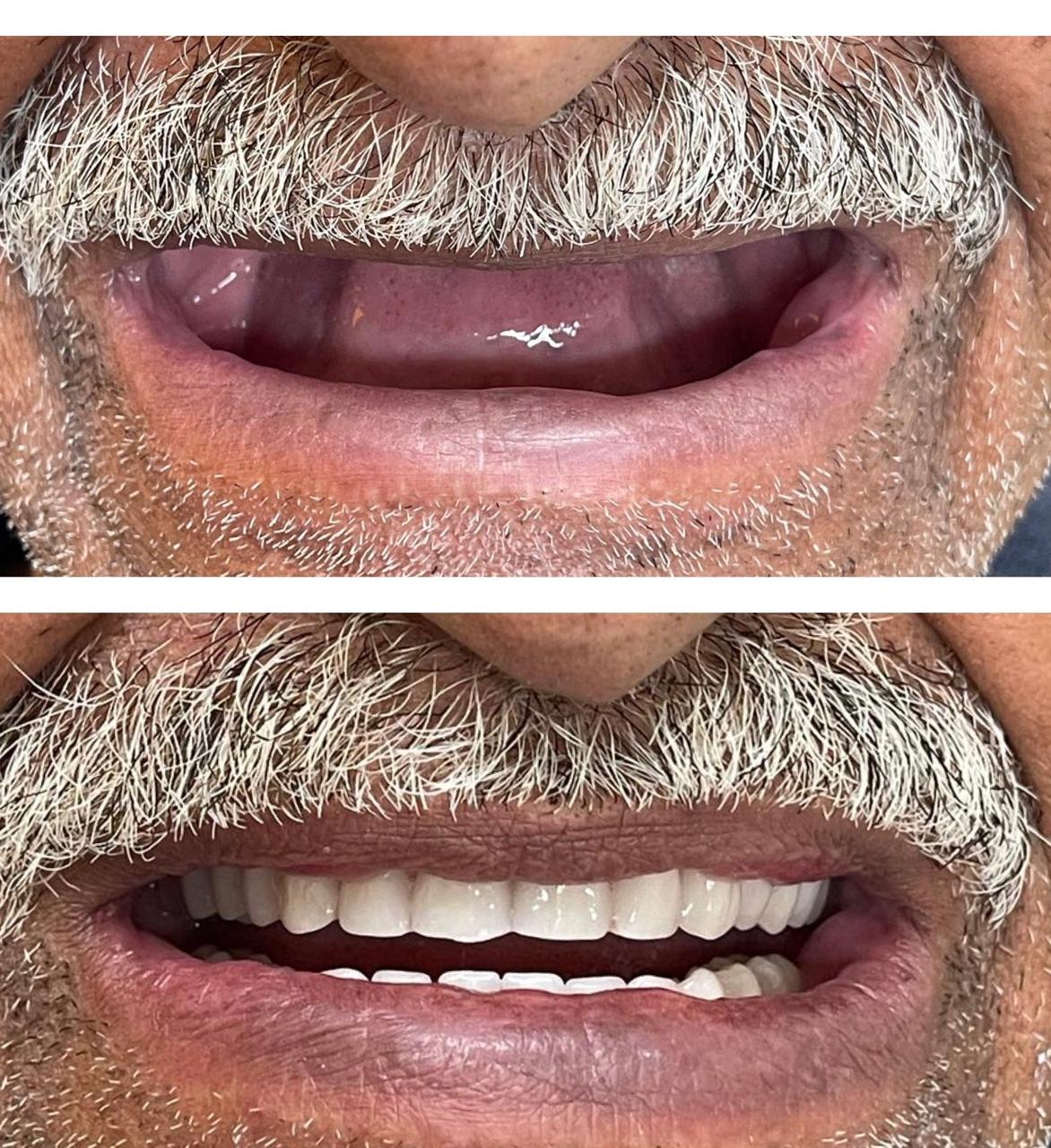 Depende do seu caso. Muitas vezes, com 4 implantes a gente já fixa toda a prótese e você nunca mais precisa usar dentadura móvel.